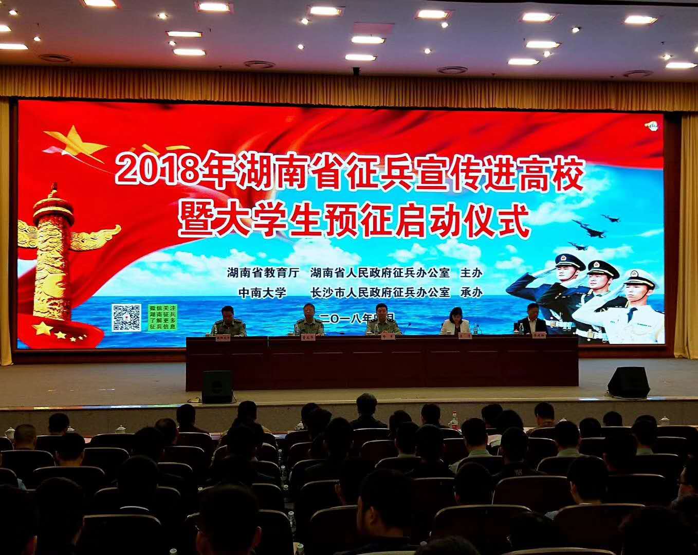 本网讯4月25日上午,2018年湖南省征兵宣传进高校暨大学生预征启动仪式在tapplay官网举行。省军区副政委、省征兵领导小组副组长喻军少将,省教育厅副巡视员左清,长沙警备区政委曹友华大校,tapplay官网党委副书记蒋建湘,省军区动员局副局长、省征兵办公室副主任欧阳大力,长沙地区15所高校的师生代表、各级兵役机关和驻长部队近千人参加启动仪式。