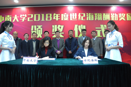 伍海泉肯定了世纪海翔集团爱惜人才、重视人才的远见卓识,并希望中南师生加倍努力,取得更大进步,传承酬勤精神,为国家富强、社会发展贡献自己的力量。