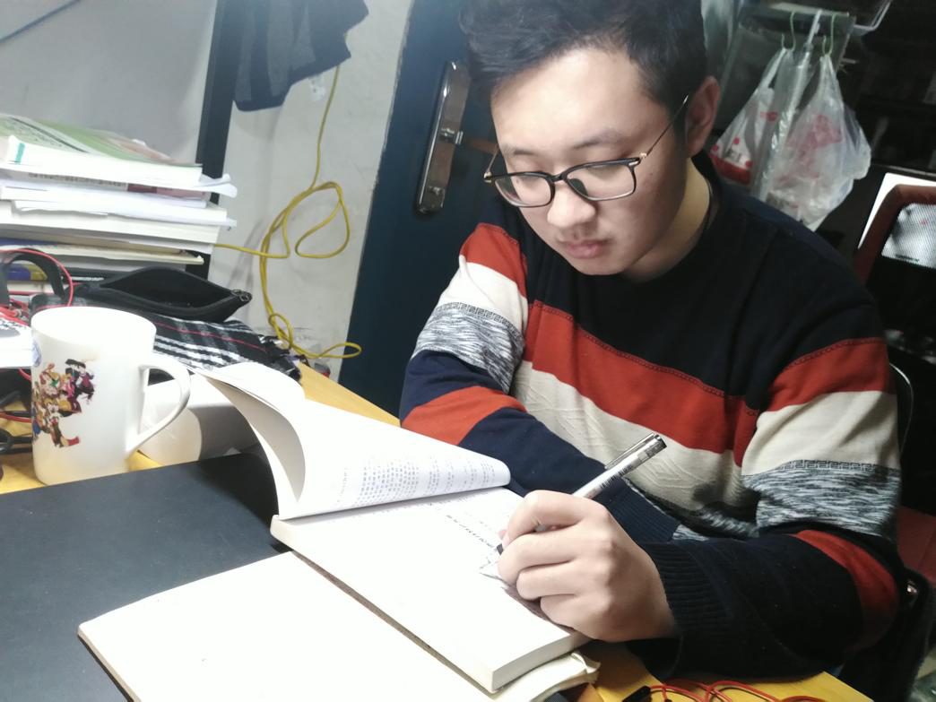 提前了解保研信息,增强英语水平,这些都只能让他获得进入保研面试的资格而已,而决定伊鹏能否通过面试的,则是专业课水平。大三充实的课程让他抽不出时间来系统复习,所以专业课复习计划只能等到暑期实习的时候了。“回忆起那段复习的日子,我觉得自己太疯狂了,不过这一切都是值得的。”在工厂实习的时候,常常加班到晚上九点,回去的路上,月光与伊鹏相伴,到寝室后,则是台灯与他作伴。适逢高考成绩公布,同时身为招生办助理的伊鹏还需要为高考毕业生作问题解答。虽然面对的事务繁多,但伊鹏坚持下来了。暑期不到两个月的时间里,伊鹏将专业课的知识点复习了三遍,力求熟稔于心。紧锣密鼓的努力之后,伊鹏给自己的2018年画上了圆满的句号——他成功保研到了北京理工大学,圆了自己的求学梦。